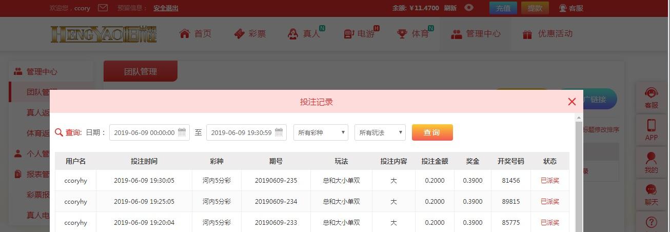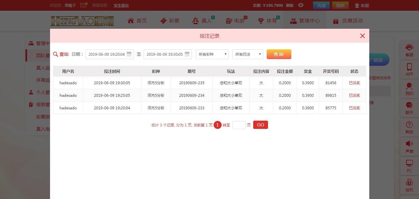 【恒耀娱乐】河内五分彩争霸赛!第006期第7天(06月09日) |