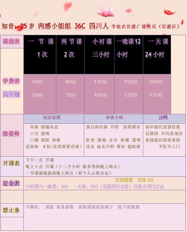 [xinxitop]提示信息[/xinxitop] 【寻欢时间】:2019年11月 【寻欢地点】:云南、昆明、官渡区 【信息来源】:亲身体验 【服务项目】:鸳鸯浴,漫游,胸推,69式,冰火,口活,爱爱、道具) 【妹妹数量】:1 【环境设备】:一般 【营业时间】:约上就行 【价格一览】:500/次 【安全评估】:90 【服务星级】:★★★★★(最高5星)应适当评价质量 【重点推荐】:人长的一般,胸大活好,各种道具制服,很会玩 【联系方式】:[unfree]QQ:964189080[/unfree] 【寻欢细节】:这个真实的,不会写细节,就说说服务吧,主动热情,比较配合,道具制服都可以玩,身材丰满型的, 【附带照片】: