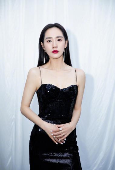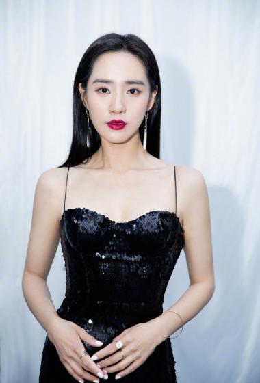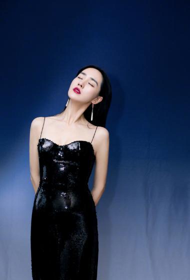 美女王智黑色吊带长裙香肩藕臂优雅魅力【10P】