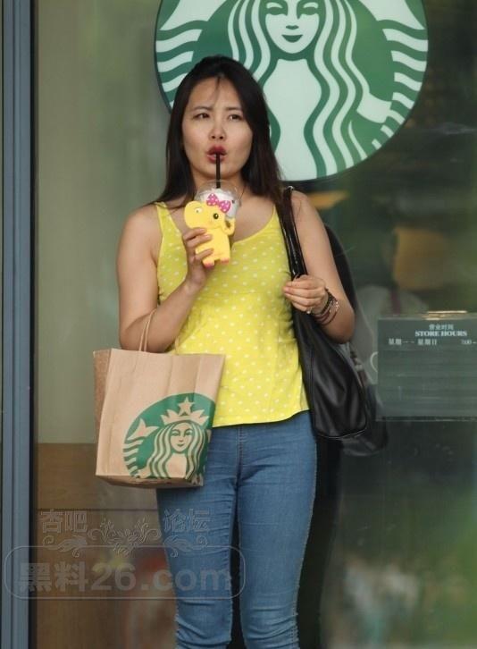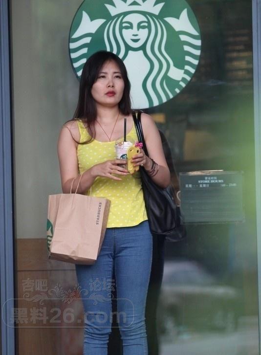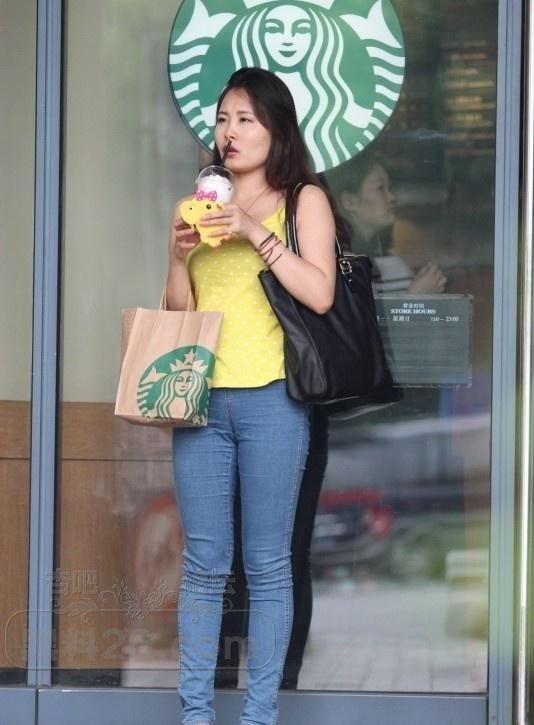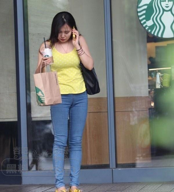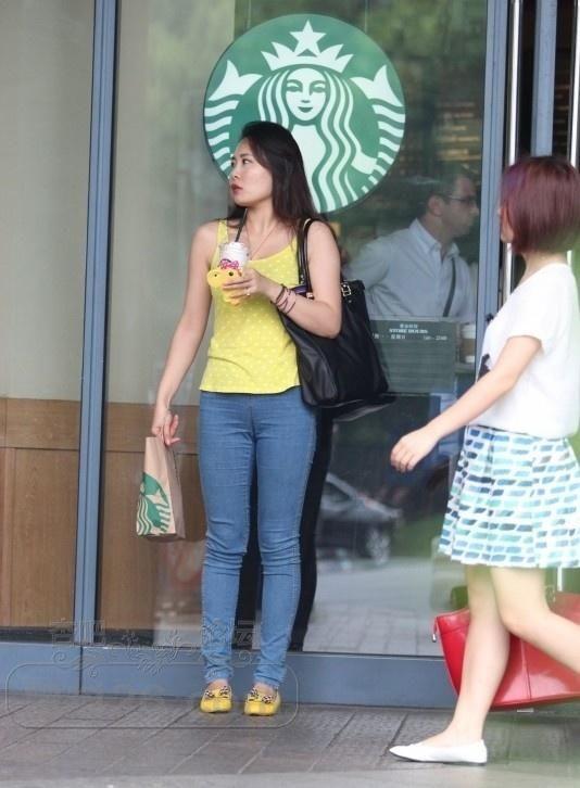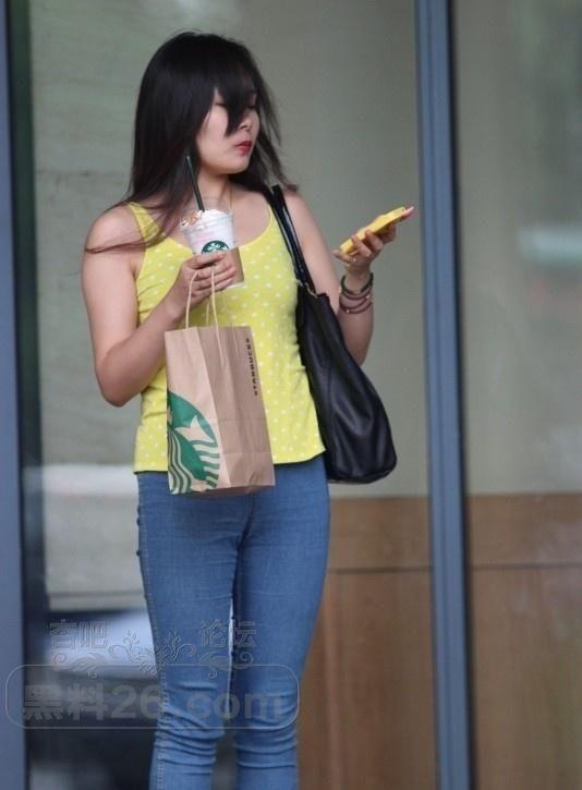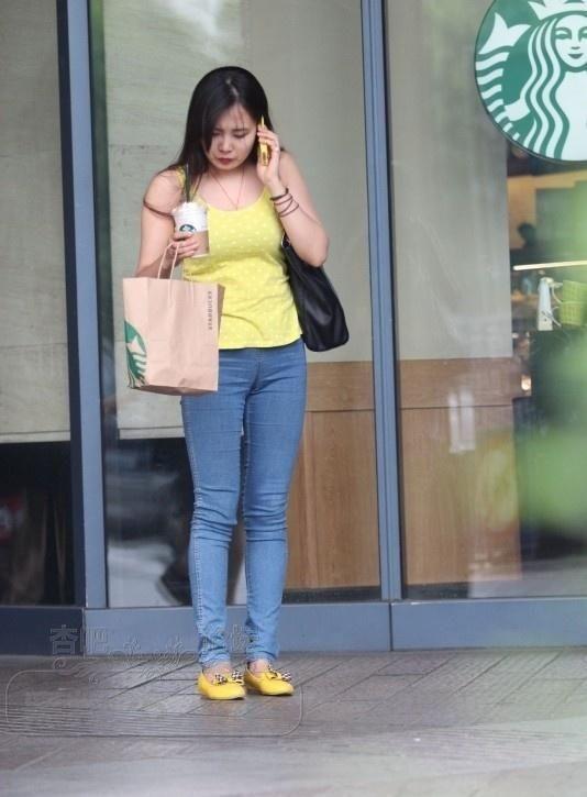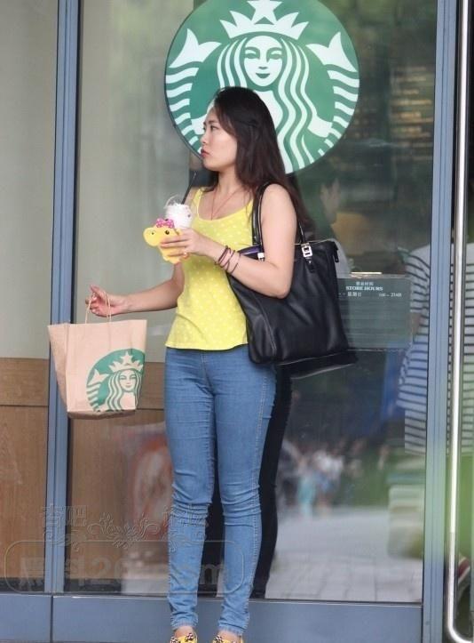 在星巴克门口穿着牛仔裤黄色上衣的小姐姐在等待男友【17P】