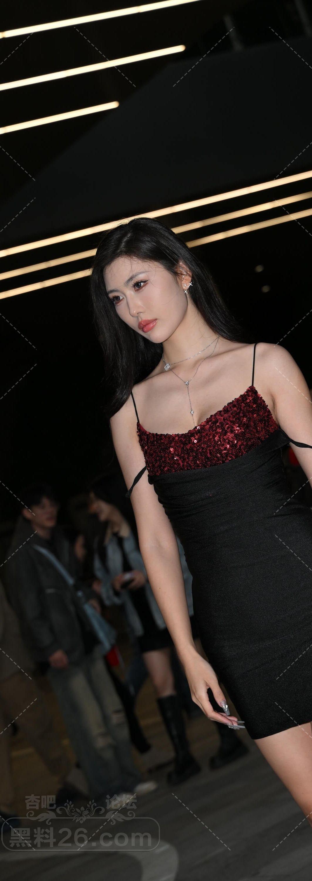 黑色吊带裙长发美女网红一双大长腿诱人【10P】
