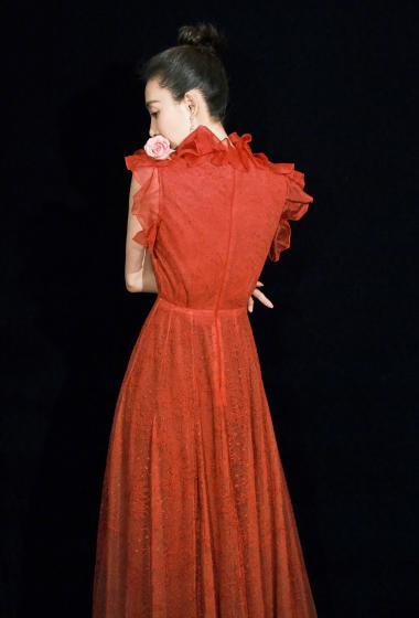 美女王丽坤杂志社红色无袖长裙回眸惊艳【10P】