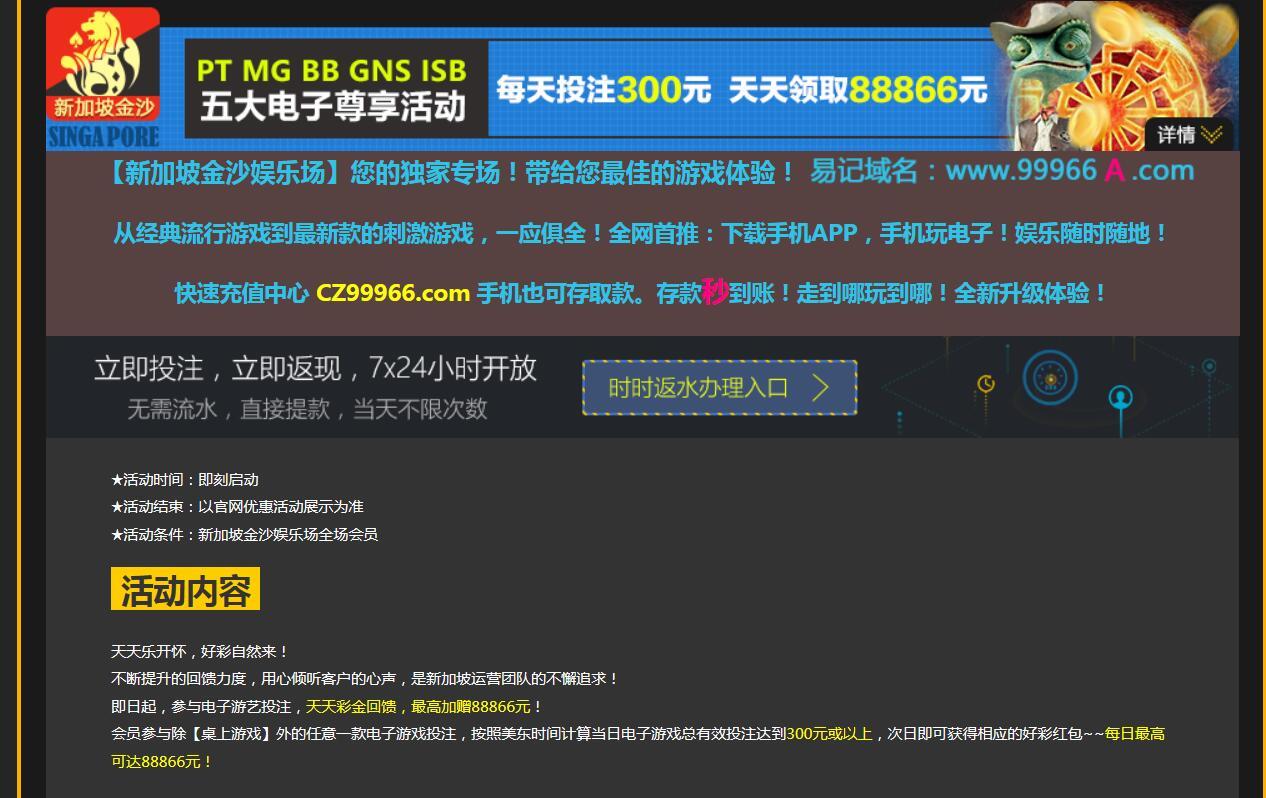 [|热门白菜] 新加坡金沙娱乐场,每天投注300元,天天领取现金88866元 |